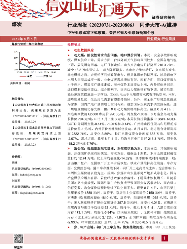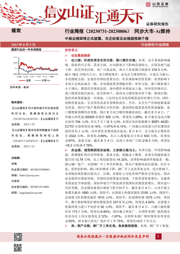【山西证券】【20230805】煤炭行业周报:中报业绩即将正式披露,关注经营及业绩超预期个股-19页