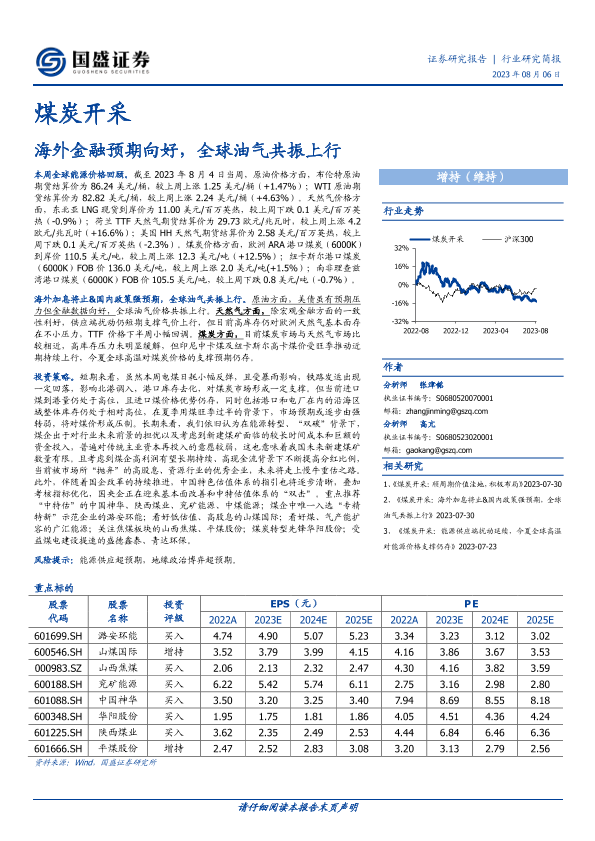 【国盛证券】【20230806】煤炭开采:海外金融预期向好,全球油气共振上行-13页
