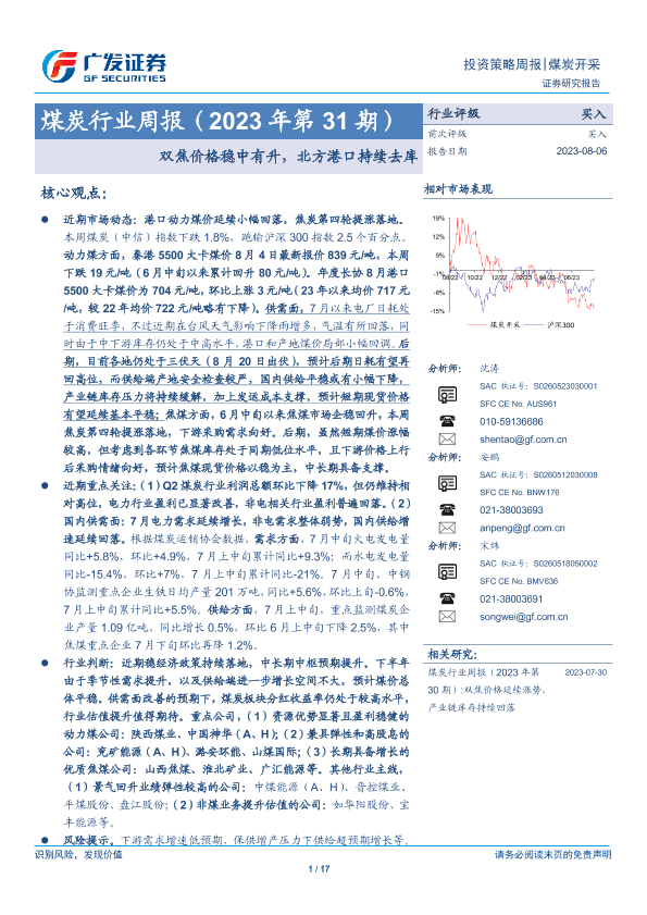 【广发证券】【20230806】20230806-广发证券-煤炭行业周报(2023年第31期):双焦价格稳中有升,北方港口持续去库-17页