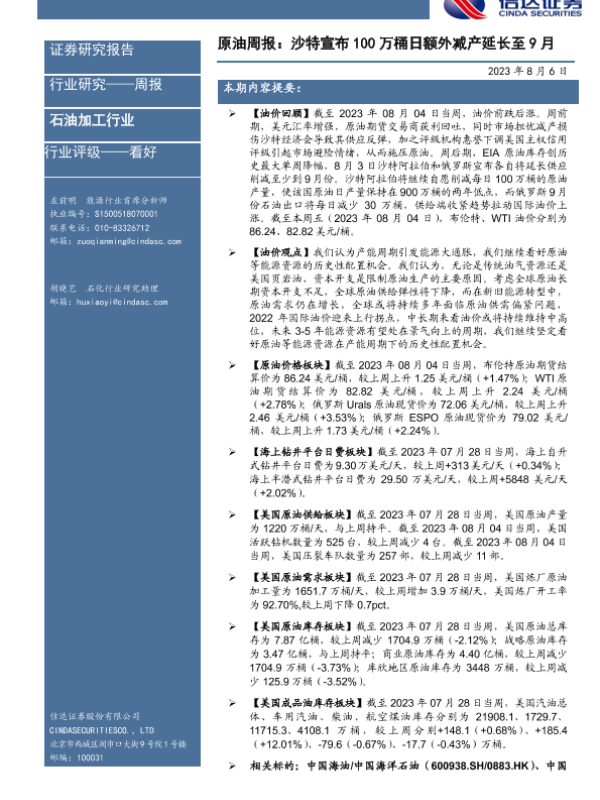 【信达证券】【20230806】原油周报:沙特宣布100万桶日额外减产延长至9月-25页
