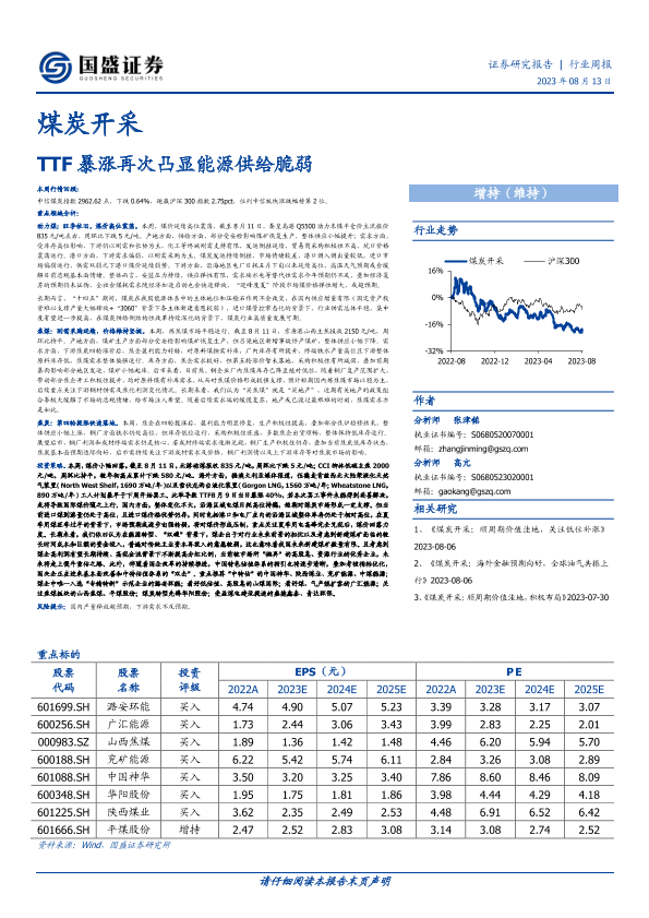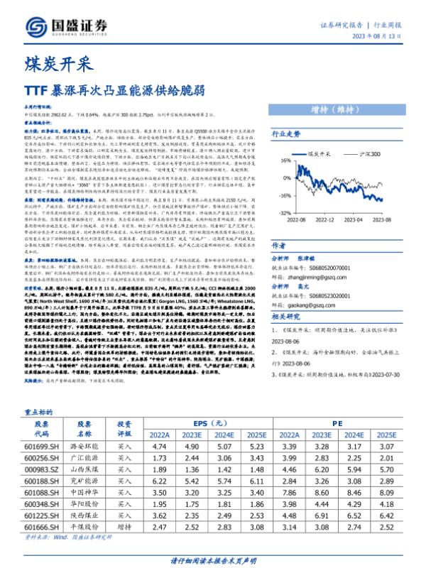 【国盛证券】【20230813】20230813-国盛证券-煤炭开采行业周报:TTF暴涨再次凸显能源供给脆弱-17页
