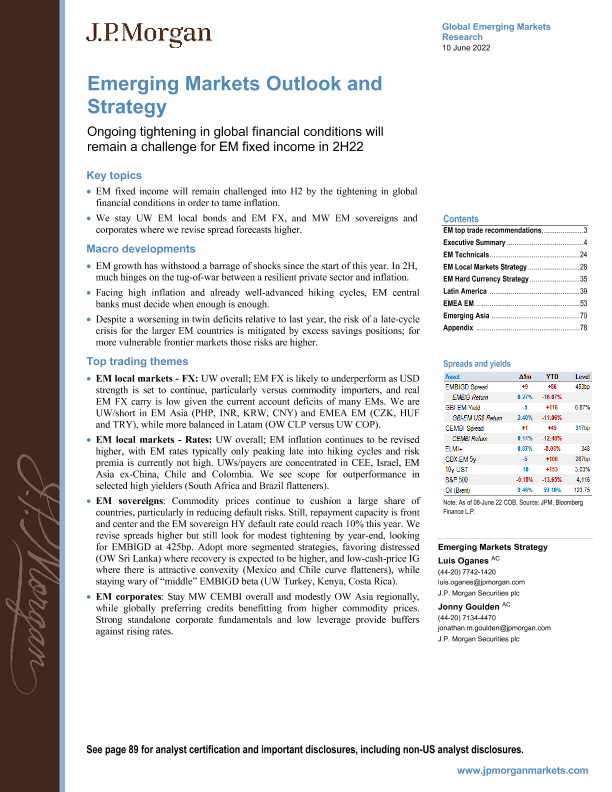 【J.P. Morgan】【20220610】J.P.摩根-新兴市场投资策略-22年下半年,全球金融条件持续收紧仍将是新兴市场固定收益的挑战-94页