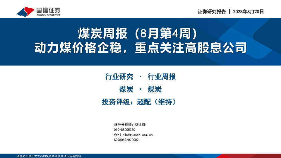 【国信证券】【20230820】20230820-国信证券-煤炭周报(8月第4周):动力煤价格企稳,重点关注高股息公司-29页