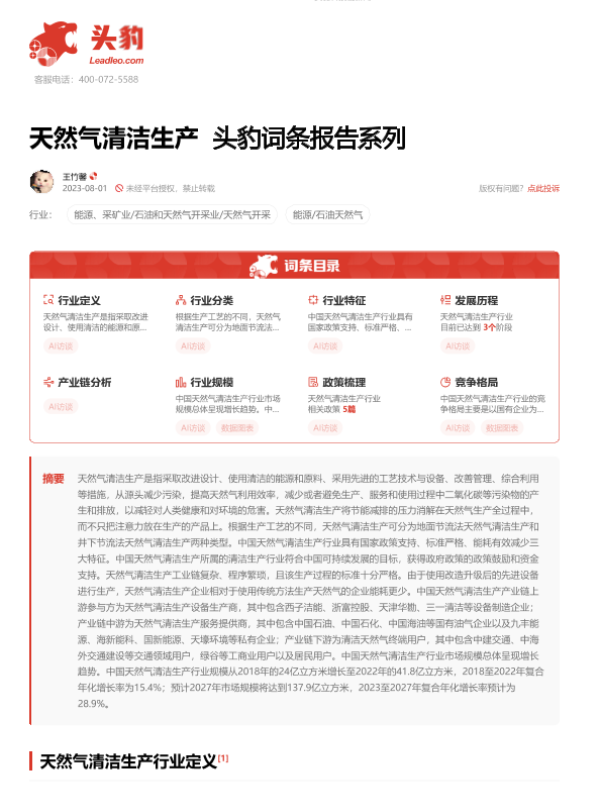 【头豹研究院】【20230801】天然气清洁生产 头豹词条报告系列-18页