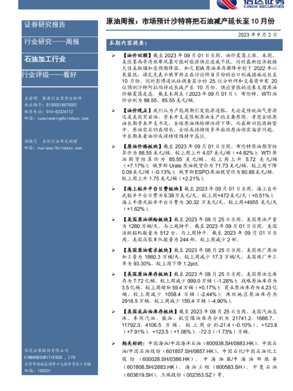 【信达证券】【20230902】原油周报:市场预计沙特将把石油减产延长至10月份-25页