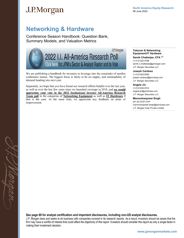 【J.P. Morgan】【20220606】J.P. Morgan美股电信和IT行业-会议季手册:问题库、摘要模型和估值指标-64页