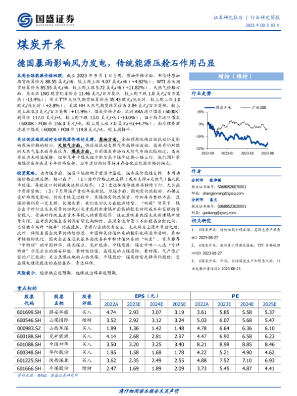 【国盛证券】【20230903】20230903-国盛证券-煤炭开采行业研究简报:德国暴雨影响风力发电,传统能源压舱石作用凸显-14页