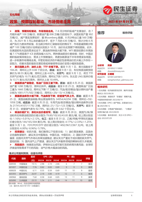 【民生证券】【20230903】石化周报:政策、预期双轮驱动,市场情绪走高-32页