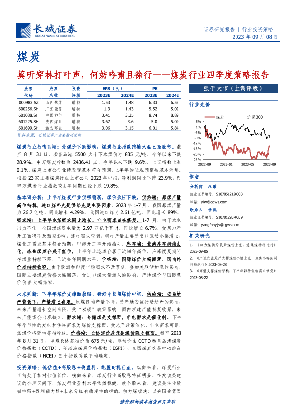 【长城证券】【20230908】莫听穿林打叶声,何妨吟啸且徐行——煤炭行业四季度策略报告-37页