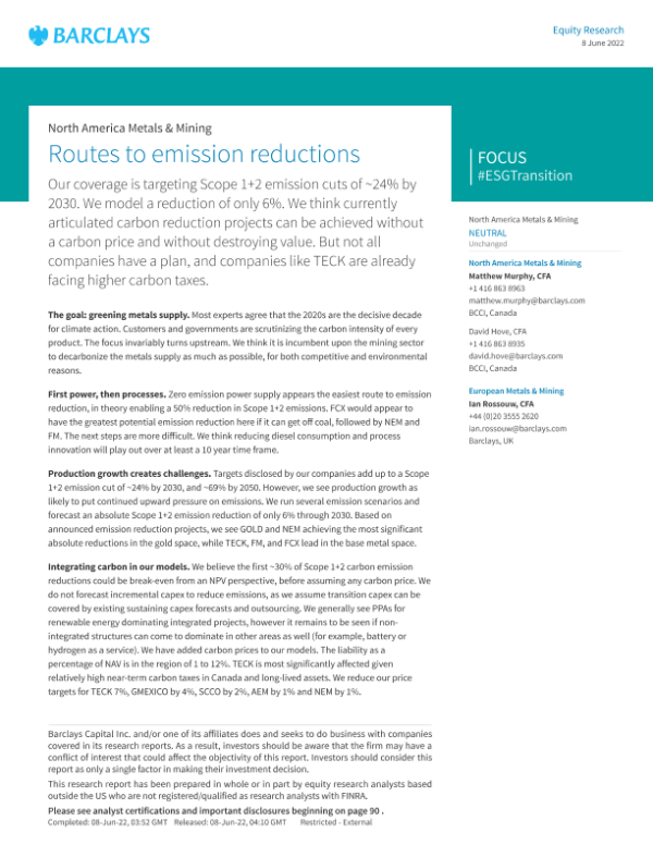 【巴克莱资本公司】【20220608】北美金属与采矿业减排路径-95页