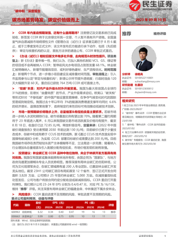 【民生证券】【20230910】“碳中和”深度报告:碳市场蓄势待发,碳定价拾级而上-40页
