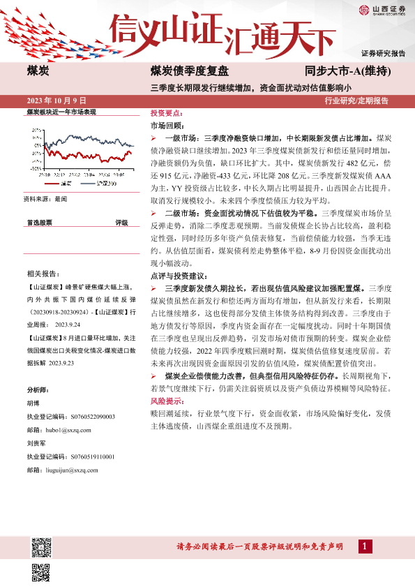 【山西证券】【20231009】煤炭债季度复盘:三季度长期限发行继续增加,资金面扰动对估值影响小-11页