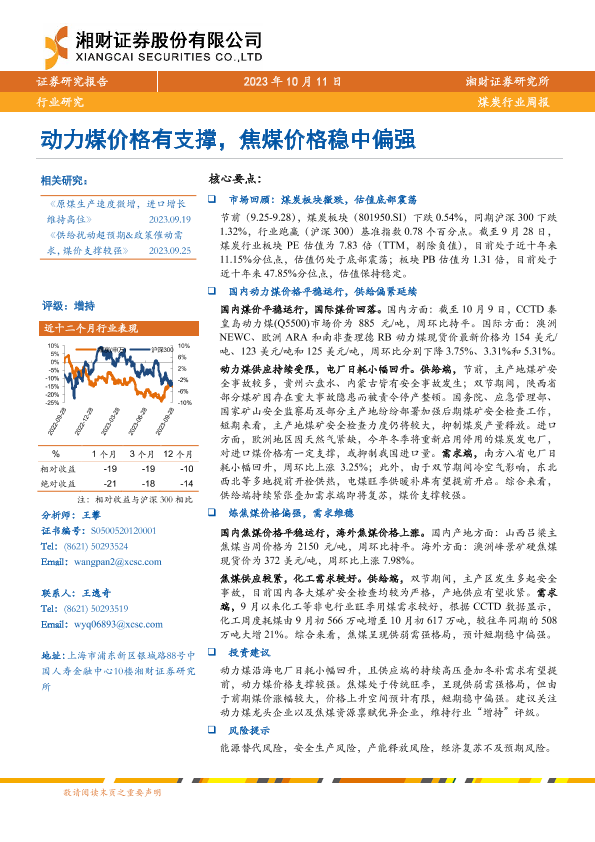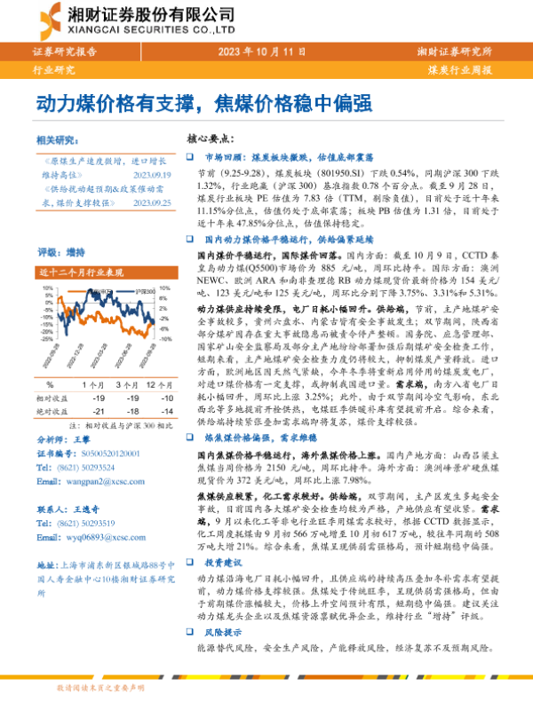 【湘财证券】【20231011】20231011-湘财证券-煤炭行业周报:动力煤价格有支撑,焦煤价格稳中偏强-13页