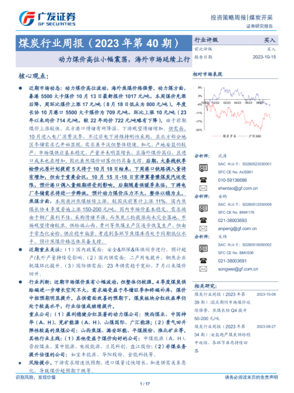 【广发证券】【20231015】20231015-广发证券-煤炭行业周报(2023年第40期):动力煤价高位小幅震荡,海外市场延续上行-17页