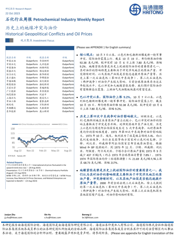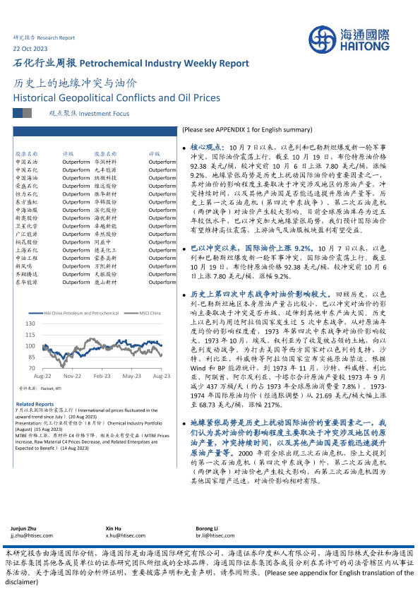 【海通国际】【20231022】石化行业周报:历史上的地缘冲突与油价-14页