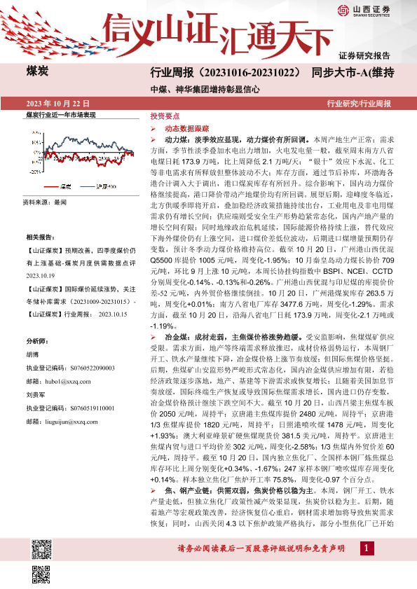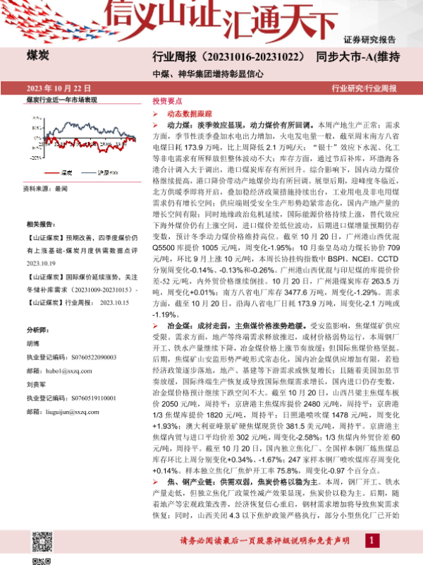 【山西证券】【20231022】煤炭行业周报:中煤、神华集团增持彰显信心-20页