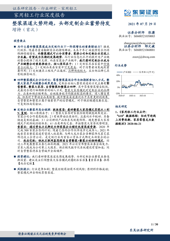 【东吴证券】【20210729】家用轻工行业深度报告:整装渠道大势所趋,头部定制企业蓄势待发-30页