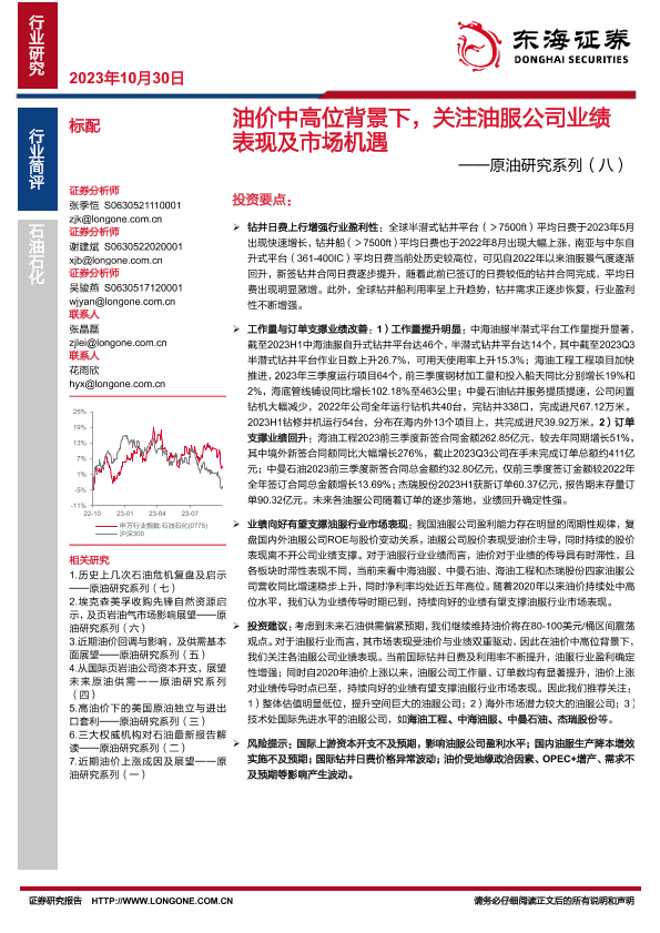 【东海证券】【20231030】20231030-东海证券-原油研究系列(八):油价中高位背景下,关注油服公司业绩表现及市场机遇-11页