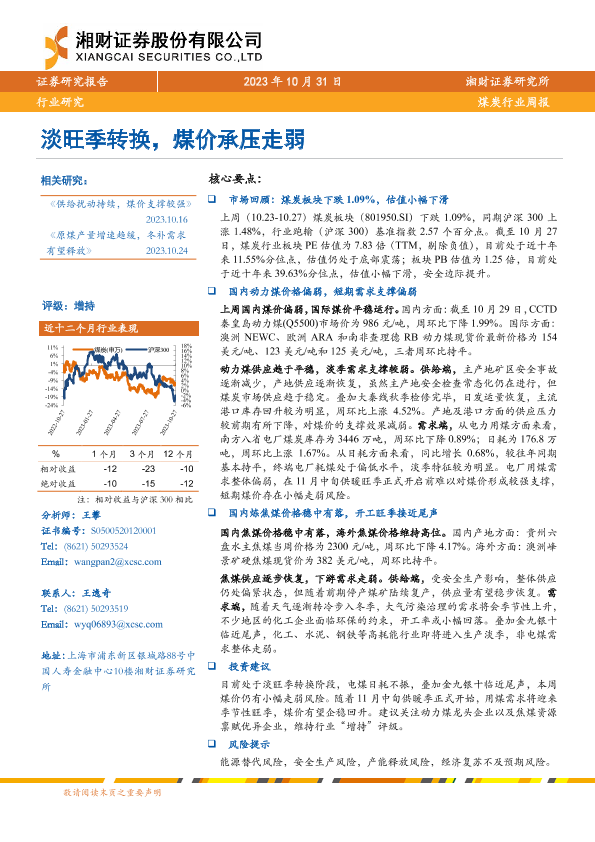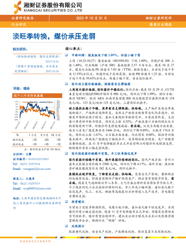【湘财证券】【20231031】20231031-湘财证券-煤炭行业周报:淡旺季转换,煤价承压走弱-13页