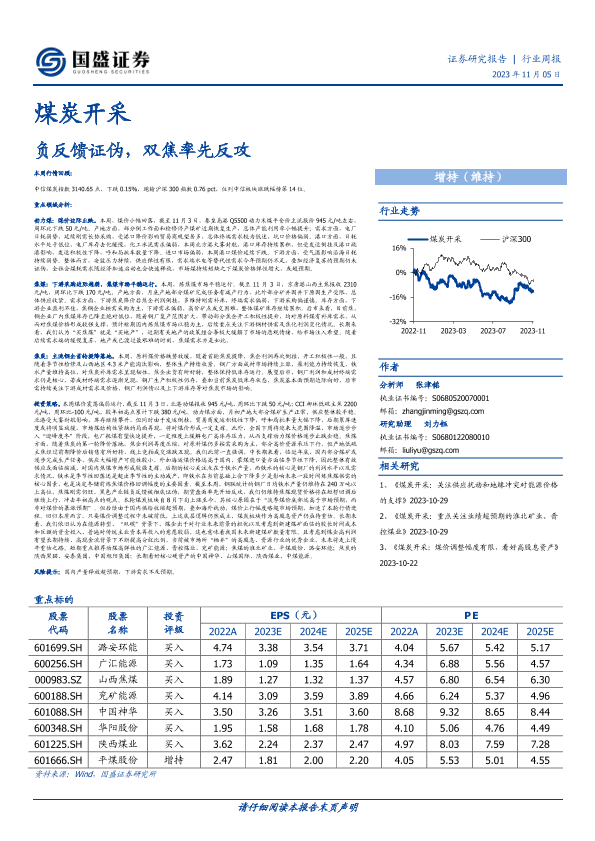 【国盛证券】【20231105】20231105-国盛证券-煤炭开采行业周报:负反馈证伪,双焦率先反攻-17页