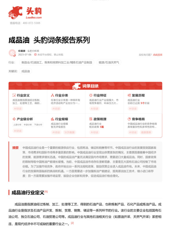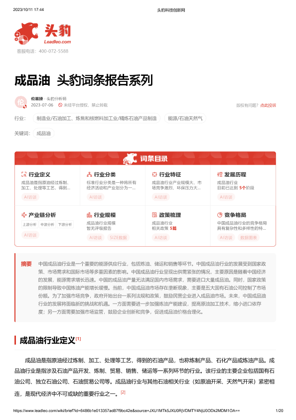 【头豹研究院】【2023】20231108-头豹研究院-成品油 头豹词条报告系列-20页