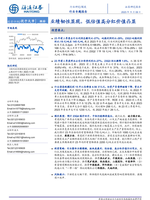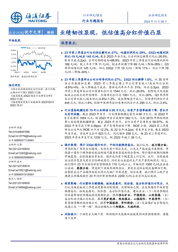【海通证券】【20231109】20231109-海通证券-煤炭行业专题报告:业绩韧性显现,低估值高分红价值凸显-20页