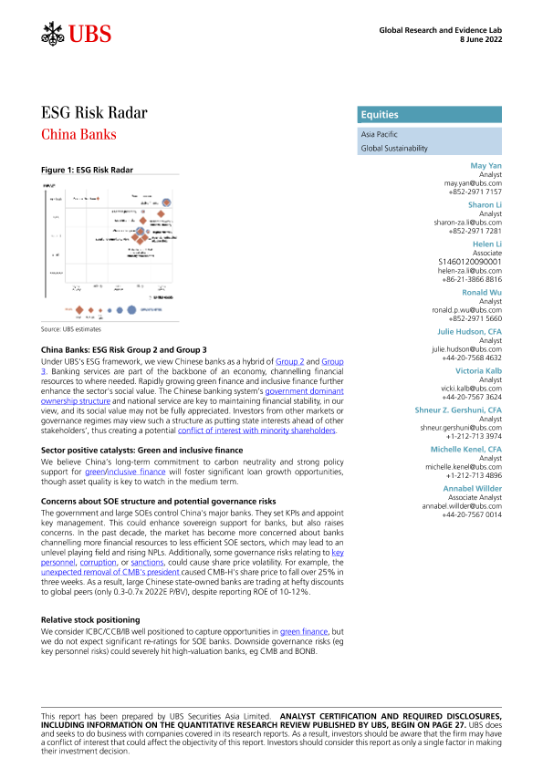 【瑞银】【20220608】瑞银-中国投资策略-ESG风险雷达:中国的银行-31页