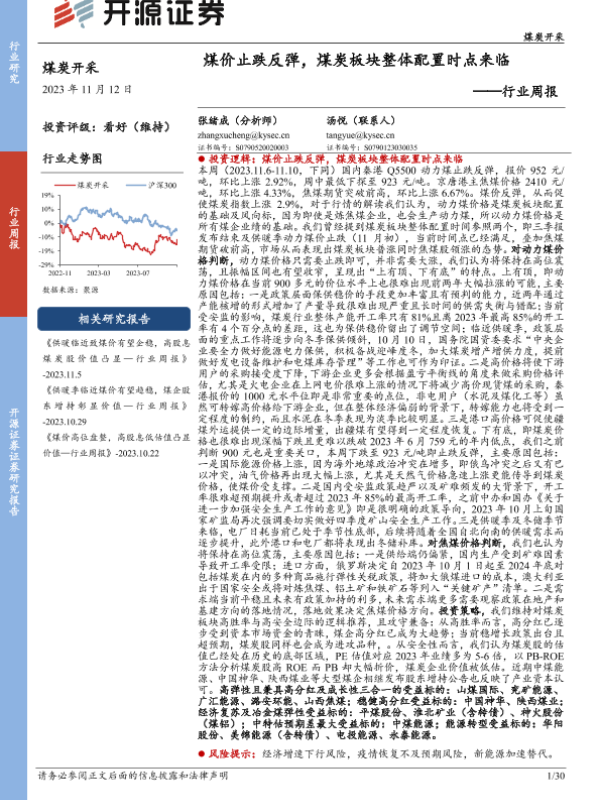 【开源证券】【20231112】20231112-开源证券-煤炭开采行业周报:煤价止跌反弹,煤炭板块整体配置时点来临-30页
