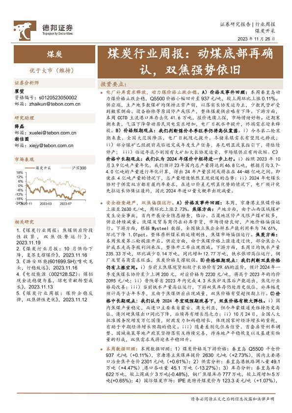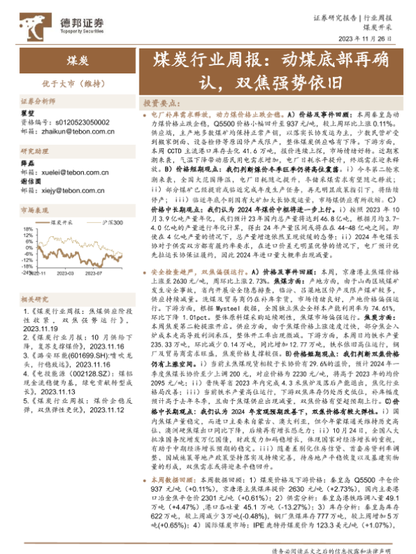 【德邦证券】【20231126】煤炭行业周报:动煤底部再确认,双焦强势依旧-18页