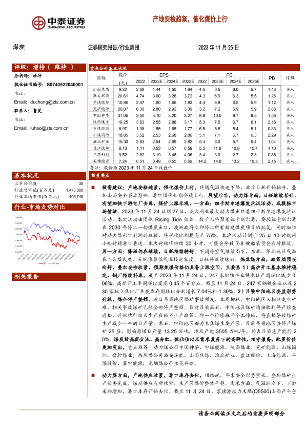 【中泰证券】【20231125】20231125-中泰证券-煤炭行业周报:产地安检趋紧,催化煤价上行-27页
