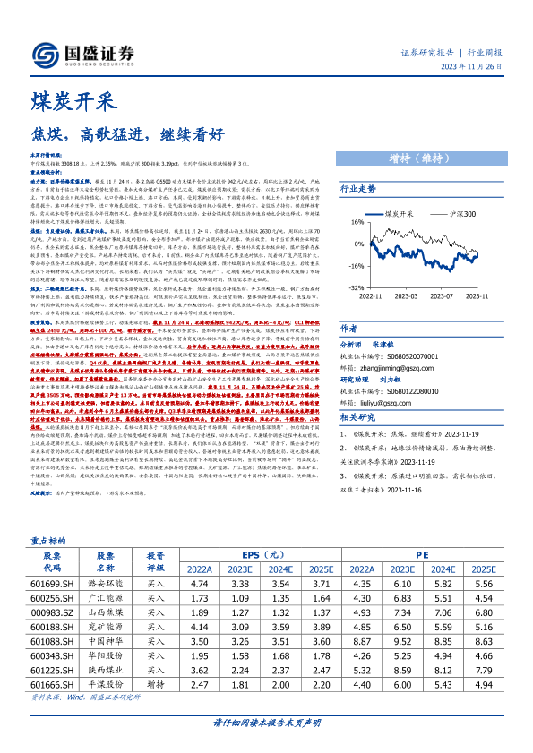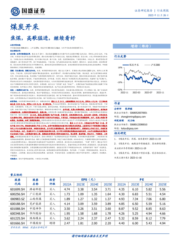 【国盛证券】【20231126】20231126-国盛证券-煤炭开采行业周报:焦煤,高歌猛进,继续看好-16页