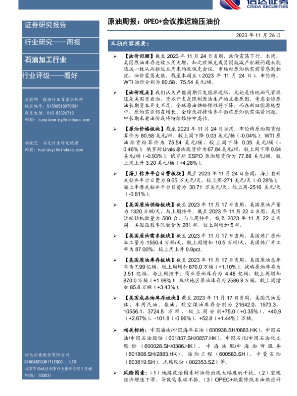 【信达证券】【20231126】原油周报:OPEC+会议推迟施压油价-25页