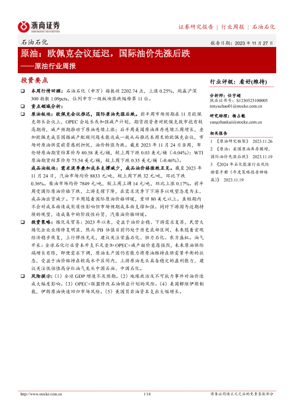【浙商证券】【20231127】原油行业周报:欧佩克会议延迟,国际油价先涨后跌-14页