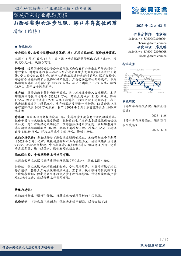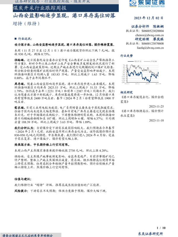 【东吴证券】【20231202】20231202-东吴证券-煤炭开采行业跟踪周报:山西安监影响逐步显现,港口库存高位回落-10页