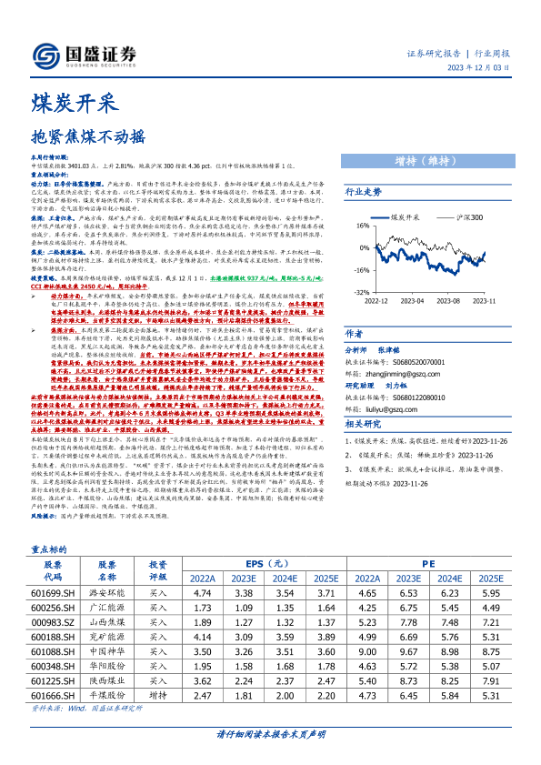 【国盛证券】【20231203】20231203-国盛证券-煤炭开采行业周报:抱紧焦煤不动摇-18页