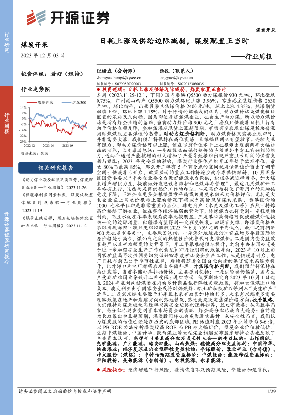 【开源证券】【20231203】20231203-开源证券-煤炭开采行业周报:日耗上涨及供给边际减弱,煤炭配置正当时-29页