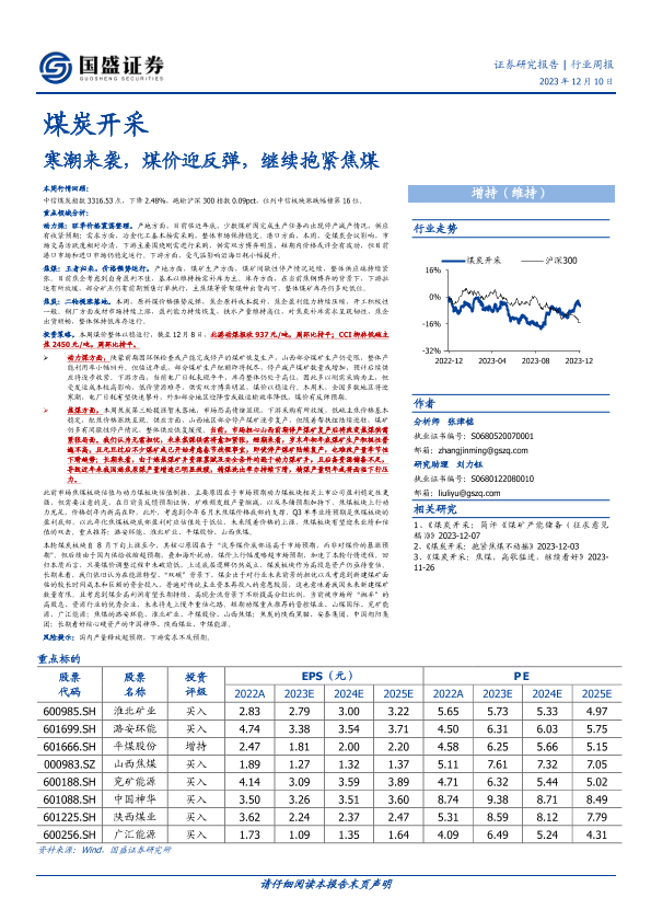 【国盛证券】【20231210】20231210-国盛证券-煤炭开采行业周报:寒潮来袭,煤价迎反弹,继续抱紧焦煤-17页