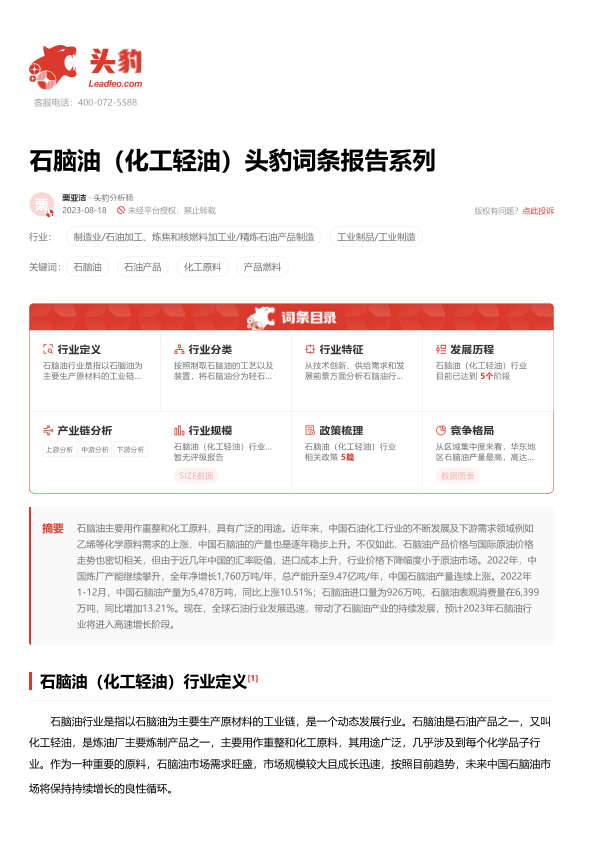【头豹研究院】【20231215】石脑油(化工轻油)头豹词条报告系列-18页