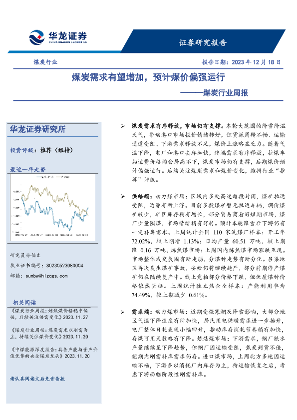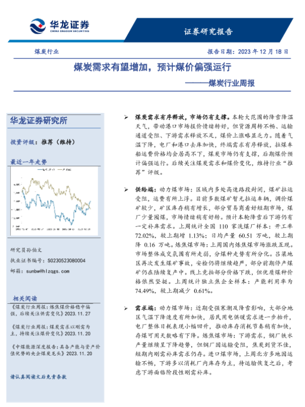 【华龙证券】【20231218】20231218-华龙证券-煤炭行业周报:煤炭需求有望增加,预计煤价偏强运行-15页