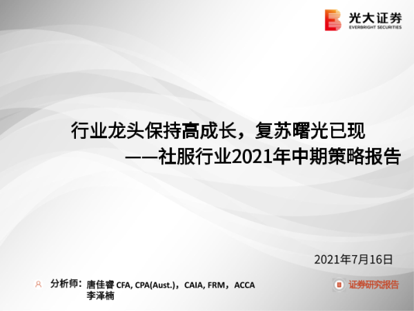 【光大证券】【20210716】社服行业2021年中期策略报告:行业龙头保持高成长,复苏曙光已现-26页