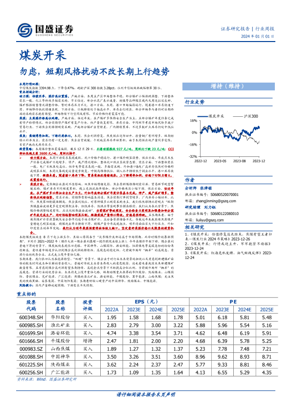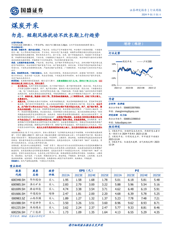 【国盛证券】【20240101】煤炭开采行业周报:勿虑,短期风格扰动不改长期上行趋势-18页