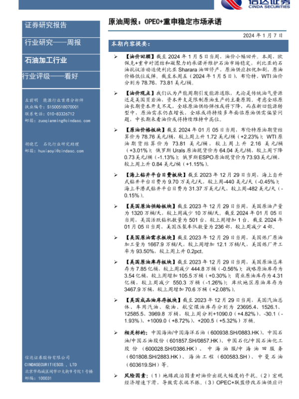 【信达证券】【20240107】原油周报:OPEC+重申稳定市场承诺-26页