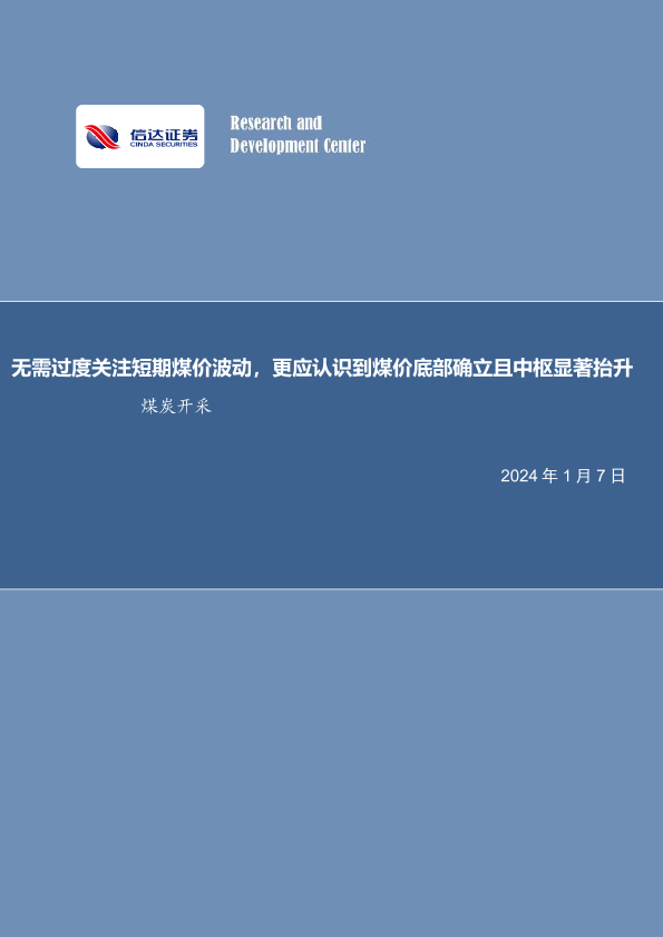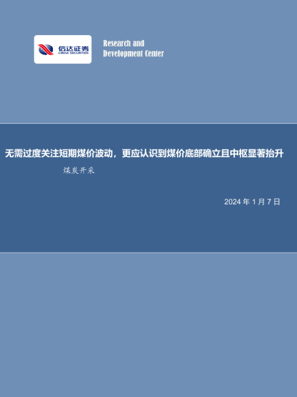 【信达证券】【20240107】20240107-信达证券-煤炭开采行业周报:无需过度关注短期煤价波动,更应认识到煤价底部确立且中枢显著抬升-30页