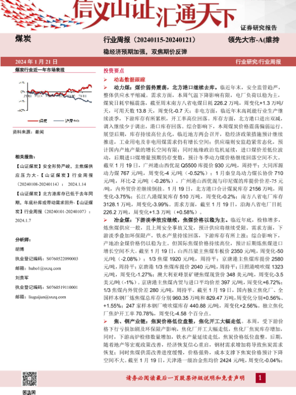 【山西证券】【20240121】煤炭行业周报:稳经济预期加强,双焦期价反弹-19页