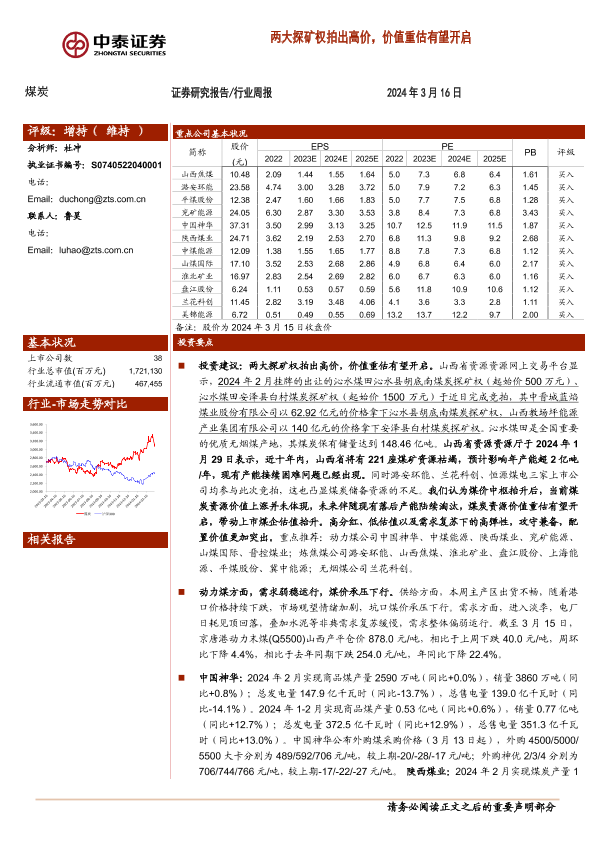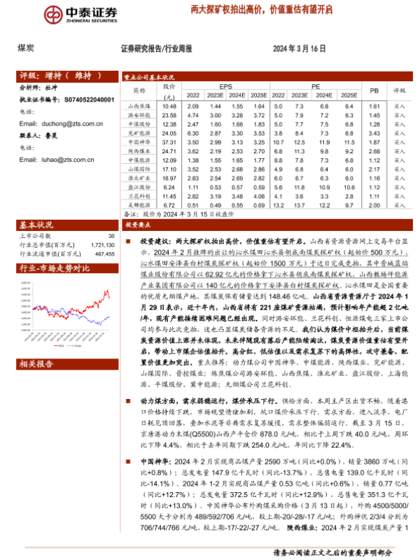 【中泰证券】【20240316】20240316-中泰证券-煤炭行业周报:两大探矿权拍出高价,价值重估有望开启-26页