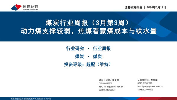 【国信证券】【20240317】20240317-国信证券-煤炭行业周报(3月第3周):动力煤支撑较弱,焦煤看蒙煤成本与铁水量-30页