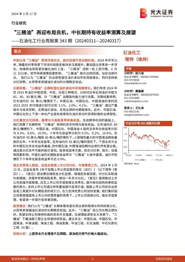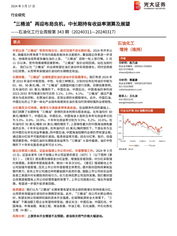 【光大证券】【20240317】20240317-光大证券-石油化工行业周报第343期:“三桶油”再迎布局良机,中长期持有收益率测算及展望-25页