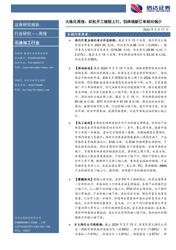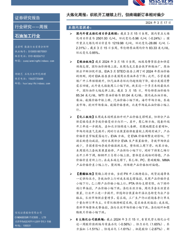 【信达证券】【20240317】大炼化周报:织机开工继续上行,但终端新订单相对偏少-18页
