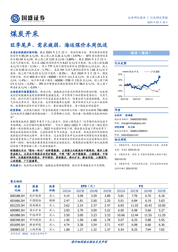 【国盛证券】【20240318】20240318-国盛证券-煤炭开采行业研究简报:旺季尾声、需求疲弱,海运煤价本周低迷-11页