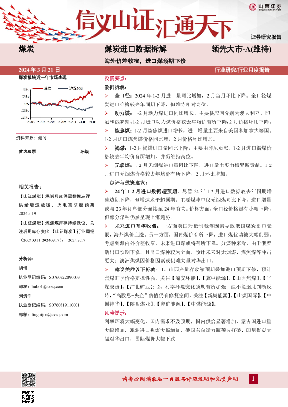 【山西证券】【20240321】煤炭进口数据拆解:海外价差收窄,进口煤预期下修-12页